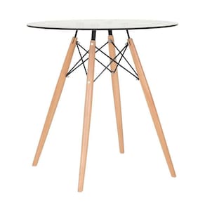 Vidro incolor temperado 8 mm, PU sintético, madeira e aço-Vidro incolor temperado 8 mm, PU sintético, madeira e aço-Vidro incolor temperado 8 mm, PU sintético, madeira e aço-Vidro incolor temperado 8 mm, PU sintético, madeira e aço-Vidro incolor temperado 8 mm, PU sintético, madeira e aço-Vidro incolor temperado 8 mm, PU sintético, madeira e açoMesa jantar cozinha redonda com tampo de vidro Eames 70 cm + 2 cadeiras Eiffel Botonê Azul -