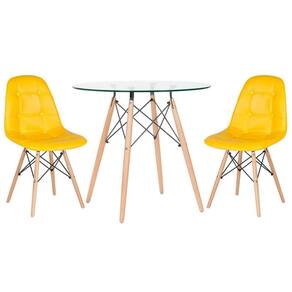 • 1 - Mesa jantar cozinha redonda com tampo de vidro Eames 80 cm 2 - Cadeiras Eiffel Botonê