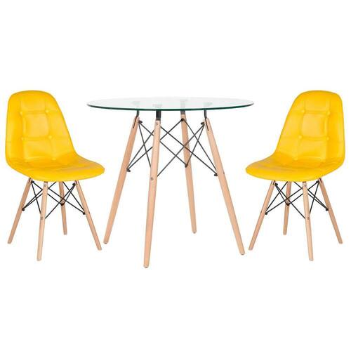 Mesa jantar cozinha redonda com tampo de vidro Eames 80 cm + 2 cadeiras Eiffel Botonê Verde -
