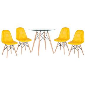 • 1 - Mesa jantar cozinha redonda com tampo de vidro Eames 80 cm 4 - Cadeiras Eiffel Botonê