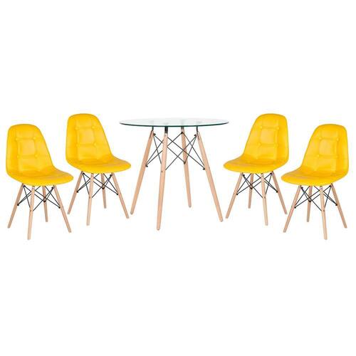 Mesa jantar cozinha redonda com tampo de vidro Eames 80 cm + 4 cadeiras Eiffel Botonê Verde -