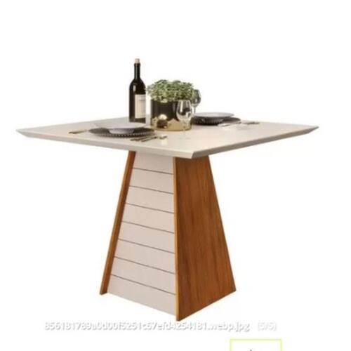 Mesa Fler é o que você precisa para decorar a sua sala de jantar, o design moderno da base em formato trapézio aliado ao tampo chanfrado de madeira pintada, vão deixar seu ambiente mais sofisticado. Na medida de 900x900mm, é ideal para espaços compactos e acomoda 4 pessoas confortavelmente.