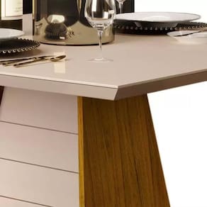 Os frisos decorativos no centro da base, dão um charme especial ao produto, um diferencial único e moderno. O sistema estrutural da mesa é muito resistente, composta por peças em MDP e MDF, derivados de madeira de reflorestamento, que são resistentes e ecologicamente corretos, garantindo a segurança e durabilidade do móvel.