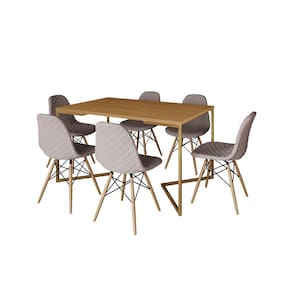 A mesa de jantar é um dos poucos móveis que efetivamente reúne a família para saborear um bom prato ao lado das pessoas que mais ama. E para garantir que o seu ambiente fique impecável, conte com a Mesa De Jantar Industrial. As laterais vazadas, sua forma reta e sua base em V conferem sofisticação e ótimo aproveitamento no cômodo.Tipo: ConjuntoModelo: Industrial Base VCor Tampo Mesa: CanelaCor Base Mesa: DouradoCor Assento Cadeira: Nude MédioBase Cadeira: MadeiraMedidas da Mesa:Altura: 78cmComprimento: 90cmLargura: 137cmMedidas da Cadeira:Altura: 85cmLargura: 47cmComprimento: 37cmATENÇÃOIMAGENS MERAMENTE ILUSTRATIVAS REALIZADO EDIÇÃO, PODENDO HAVER UMA PEQUENA VARIAÇÃO DE COR DEPENDENDO DE CADA TELA OU MONITOR.