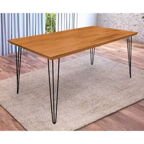 Características - Formato: Retangular - Material do Tampo: Madeira Maciça - Material dos Pés: Ferro - Acabamento dos Pés: Pintura Epóxi Eletrostática