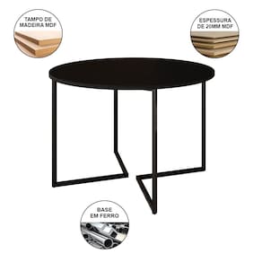 Mesa Jantar Industrial Preta 110cm Redonda Base V Ferro Preto Com 4 Poltronas Eiffel Pretas MadeiraA mesa de jantar é um dos poucos móveis que efetivamente reúne a família para saborear um bom prato ao lado das pessoas que mais ama. E para garantir que o seu ambiente fique impecável, conte com a Mesa De Jantar Industrial. As laterais vazadas, sua forma reta e sua base em V conferem sofisticação e ótimo aproveitamento no cômodo.Tipo: ConjuntoFormato: RedondaModelo: Industrial Base VCor Base: PretoCor Tampo: PretoMedidas da Mesa:Altura: 77cmDiâmetro: 110cmInformações Poltrona:Pés base: MadeiraCor Assento: PretoAltura: 80cmLargura: 38cmComprimento: 38cmATENÇÃOIMAGENS MERAMENTE ILUSTRATIVAS REALIZADO EDIÇÃO, PODENDO HAVER UMA PEQUENA VARIAÇÃO DE COR DEPENDENDO DE CADA TELA OU MONITOR.