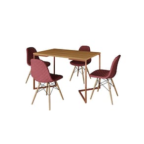 Mesa Jantar Industrial Retangular Canela 120x75 Base V Cobre C/ 4 Cadeiras Estofadas Vermelha Madeir - Marrom