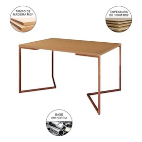 A mesa de jantar é um dos poucos móveis que efetivamente reúne a família para saborear um bom prato ao lado das pessoas que mais ama. E para garantir que o seu ambiente fique impecável, conte com a Mesa De Jantar Industrial. As laterais vazadas, sua forma reta e sua base em V conferem sofisticação e ótimo aproveitamento no cômodo.Tipo: ConjuntoModelo: Industrial Base VCor Tampo mesa: CanelaCor Base mesa: CobreCor Assento cadeira: VermelhoBase cadeira: MadeiraMedidas da Mesa:Altura: 77cmComprimento: 75cmLargura: 120cmMedidas da Cadeira:Altura: 85cmLargura: 47cmComprimento: 37cmATENÇÃOIMAGENS MERAMENTE ILUSTRATIVAS REALIZADO EDIÇÃO, PODENDO HAVER UMA PEQUENA VARIAÇÃO DE COR DEPENDENDO DE CADA TELA OU MONITOR.