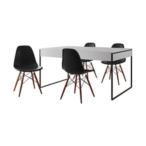 O Conjunto Mesa de jantar Filadélfia e Cadeira Eames é perfeito para reunir a família para saborear um bom prato ao lado das pessoas que mais ama. Garantindo que o seu ambiente fique impecável sem perder o estilo, qualidade e conforto.Tipo: ConjuntoModelo: FiladélfiaBase da Cadeira: MadeiraBase Mesa Ferro: Preto Cor Tampo: Branco Cor Assento: Preto Medidas da MesaAltura: 75cmComprimento: 90cmLargura: 137cmMedidas da CadeiraAltura: 85cmLargura: 47cmComprimento: 50cmAssento até o chão: 45cmATENÇÃOIMAGENS MERAMENTE ILUSTRATIVAS REALIZADO EDIÇÃO, PODENDO HAVER UMA PEQUENA VARIAÇÃO DE COR DEPENDENDO DE CADA TELA OU MONITOR.