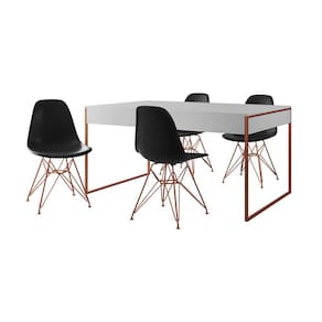 O Conjunto Mesa de jantar Filadélfia e Cadeira Eames é perfeito para reunir a família para saborear um bom prato ao lado das pessoas que mais ama. Garantindo que o seu ambiente fique impecável sem perder o estilo, qualidade e conforto.Tipo: ConjuntoModelo: FiladélfiaBase Ferro: Cobre Cor Tampo: Branco Cor Assento: Preto Medidas da MesaAltura: 75cmComprimento: 90cmLargura: 137cmMedidas da CadeiraAltura: 85cmLargura: 47cmComprimento: 50cmAssento até o chão: 45cmATENÇÃOIMAGENS MERAMENTE ILUSTRATIVAS REALIZADO EDIÇÃO, PODENDO HAVER UMA PEQUENA VARIAÇÃO DE COR DEPENDENDO DE CADA TELA OU MONITOR.
