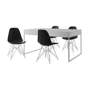 O Conjunto Mesa de jantar Filadélfia e Cadeira Eames é perfeito para reunir a família para saborear um bom prato ao lado das pessoas que mais ama. Garantindo que o seu ambiente fique impecável sem perder o estilo, qualidade e conforto.Tipo: ConjuntoModelo: FiladélfiaBase Ferro: Branco Cor Tampo: Branco Cor Assento: Preto Medidas da MesaAltura: 75cmComprimento: 90cmLargura: 137cmMedidas da CadeiraAltura: 85cmLargura: 47cmComprimento: 50cmAssento até o chão: 45cmATENÇÃOIMAGENS MERAMENTE ILUSTRATIVAS REALIZADO EDIÇÃO, PODENDO HAVER UMA PEQUENA VARIAÇÃO DE COR DEPENDENDO DE CADA TELA OU MONITOR.