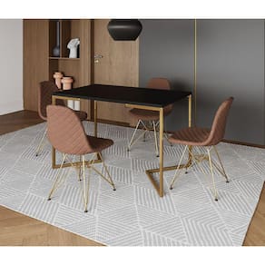 Mesa Jantar Industrial Retangular Preta 120x75 Base V + 4 Cadeiras Estofada Eames Caramelo Aço Doura - Preto