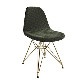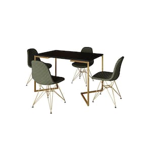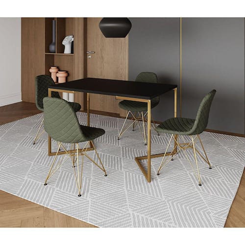 Mesa Jantar Industrial Retangular Preta 120x75 Base V + 4 Cadeiras Estofada Eames Verdes Aço Dourado - Preto