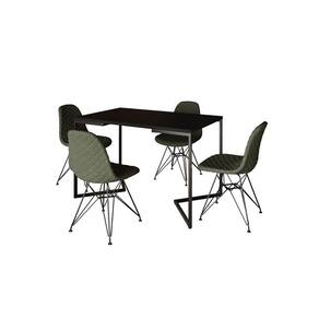 Mesa Jantar Industrial Retangular Preta 120x75 Base V C/ 4 Cadeiras Estofadas Eiffel Verdes Aço Pret - Preto