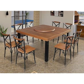 A Mesa Sophia com Prato Giratório é ideal para quem busca praticidade e conforto na hora de servir. A mesa possui tampo em madeira maciça rústica e sua base é feita de alumínio. É uma mesa com material de qualidade e resistente que deixará a sua casa mais moderna sem perder a sofisticação. Tipo: ConjuntoModelo da Mesa: SophiaModelo da Cadeira: ParisCor da Mesa: CastanhoCor da Cadeira: Castanho Cor da Base da Cadeira: PretoMedidas da Mesa:Altura: 80cmLargura: 130cmComprimento: 130cmMedidas da Cadeira:Altura: 91cmLargura: 40cmComprimento: 42cmOBS: A madeira pode apresentar detalhes (ranhuras) da própria madeira e também variações do tom da madeira, o que a torna única e l, sendo uma peça e não um defeito de fabricação!ATENÇÃOIMAGENS MERAMENTE ILUSTRATIVAS REALIZADO EDIÇÃO, PODENDO HAVER UMA PEQUENA VARIAÇÃO DE COR DEPENDENDO DE CADA TELA OU MONITOR.Mesa Jantar Industrial Sophia 1,30m Prato GiratÃrio Madeira 8 Cadeiras Paris PÃs AlumÃnio Castanho