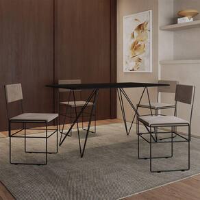 Mesa Jantar Industrial Trama 1,40x0,80m Preta Com 4 Cadeiras Estofadas Vitória Bege E Preta