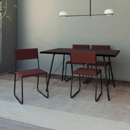 Mesa Jantar Paraty 120cm Tampo Preto Com 4 Cadeiras Angra Estofadas Preta E Marrom Preto - Blush