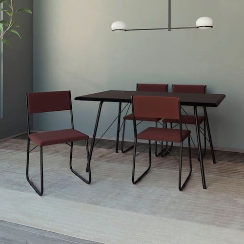 Mesa Jantar Paraty 120cm Tampo Preto Com 4 Cadeiras Angra Estofadas Preta E Marrom A sua cozinha ou sala de jantar estará completa com esse maravilhoso conjunto para realizar as grandes as refeições e reuniões em família. E se você busca móveis com design contemporâneo, acompanhado de muita qualidade material e combinação de cores clássica, o modelo Angra é para você!