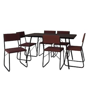 IMAGENS MERAMENTE ILUSTRATIVAS REALIZADO EDIÇÃO, PODENDO HAVER UMA PEQUENA VARIAÇÃO DE COR DEPENDENDO DE CADA TELA OU MONITOR.Mesa Jantar Paraty 150cm Tampo Preto com Cadeiras 6 Cadeiras Angra Estofadas Preta e Marrom