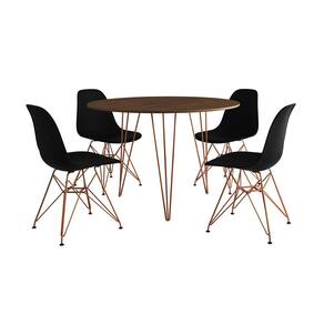 A Mesa de Jantar Redonda Clips com as Cadeiras Eiffel é a escolha perfeita para você que está em busca de um produto sofisticado e muito versátil! O Conjunto possui o diferencial de ser um produto compacto e prático, podendo ser incorporado facilmente nos mais diversos ambientes, como: cozinhas, restaurantes, varandas ou até áreas de festas!CaracterísticasTipo: Conjunto Mesa e 4 CadeirasModelo: ClipsCor do Tampo: AmêndoaCor do Assento: PretoBase Ferro: CobreDIMENSÕES DO PRODUTOCadeira:Altura: 85cmLargura: 47cmComprimento: 50cmMesa:Altura: 85cmDiâmetro: 110cmATENÇÃOAS IMAGENS SÃO MERAMENTE ILUSTRATIVAS E PODEM SOFRER VARIAÇÕES DE COR E PEQUENOS DETALHES DE ACORDO COM O SEU MONITOR, ILUMINAÇÃO DO AMBIENTE E ATÉ MESMO A SUA PERCEPÇÃO VISUAL.