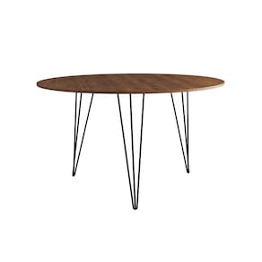 Mesa Jantar Redonda 110cm Amêndoa Clips 3 Pés com 4 Cadeiras Eames Eiffel Pretas Ferro Preto - Marrom