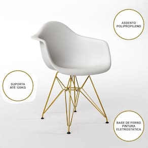 A Mesa de Jantar Redonda Clips com as Poltronas Eiffel é a escolha perfeita para você que está em busca de um produto sofisticado e muito versátil! O Conjunto possui o diferencial de ser um produto compacto e prático, podendo ser incorporado facilmente nos mais diversos ambientes, como: cozinhas, restaurantes, varandas ou até áreas de festas!CaracterísticasTipo: Conjunto Mesa e 5 PoltronasModelo: ClipsCor do Tampo: PretoCor do Assento: BrancoBase Ferro: DouradoDIMENSÕES DO PRODUTOPoltrona:Altura: 80cmLargura: 38cmComprimento: 38cmMesa:Altura: 85cmDiâmetro: 110cmATENÇÃOAS IMAGENS SÃO MERAMENTE ILUSTRATIVAS E PODEM SOFRER VARIAÇÕES DE COR E PEQUENOS DETALHES DE ACORDO COM O SEU MONITOR, ILUMINAÇÃO DO AMBIENTE E ATÉ MESMO A SUA PERCEPÇÃO VISUAL.Mesa Jantar Redonda 110cm Preta Clips 3 PÃs com 5 Poltronas Eames Eiffel Brancas Base Dourada