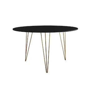 Mesa Jantar Redonda 110Cm Preta Clips 3 Pés Com 5 Poltronas Brancas Base Dourada - Cor: Preto