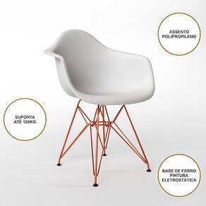 A Mesa de Jantar Redonda Clips com as Poltronas Eiffel é a escolha perfeita para você que está em busca de um produto sofisticado e muito versátil! O Conjunto possui o diferencial de ser um produto compacto e prático, podendo ser incorporado facilmente nos mais diversos ambientes, como: cozinhas, restaurantes, varandas ou até áreas de festas!CaracterísticasTipo: Conjunto Mesa e 4 PoltronasModelo: ClipsCor do Tampo: BrancoCor do Assento: BrancoBase Ferro: CobreDIMENSÕES DO PRODUTOPoltrona:Altura: 80cmLargura: 38cmComprimento: 38cmMesa:Altura: 85cmDiâmetro: 90cmATENÇÃOAS IMAGENS SÃO MERAMENTE ILUSTRATIVAS E PODEM SOFRER VARIAÇÕES DE COR E PEQUENOS DETALHES DE ACORDO COM O SEU MONITOR, ILUMINAÇÃO DO AMBIENTE E ATÉ MESMO A SUA PERCEPÇÃO VISUAL.Mesa Jantar Redonda 90cm Branca Clips 3 PÃs com 4 Poltronas Eiffel Eames Daw Brancas Base Cobre