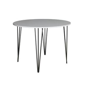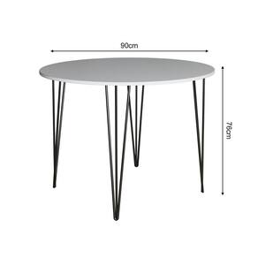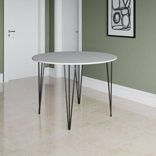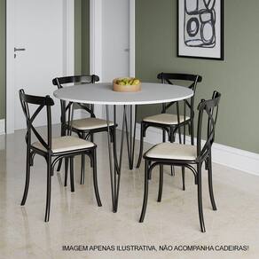 Mesa Jantar Redonda Branca Hairpin 90cm Elen Base Ferro Preto - Cor: Preto