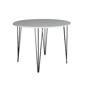 Mesa Jantar Redonda Branca Hairpin 90cm Elen Base Ferro Preto