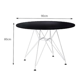 Mesa Jantar Redonda Preta 90Cm Com Ferro Branco Cor: Preto