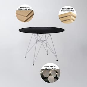 Mesa Jantar Eames Redonda Preta 90cm Com Ferro BrancoA Mesa Eiffel é a escolha ideal para deixar sua casa muito mais bonita e renovada. Essa mesa tem em sua estrutura materiais de altíssima qualidade, que proporciona muito mais resistência, mesmo com o passar dos anos. Ela tem formato redondo e possui espaço para 4 lugares, o que é ideal para um jantar em família. A mesa é versátil e combina com vários tipos de decoração, o que dá mais praticidade em casa.Tipo: MesaModelo: EiffelCor: Tampo Redondo BrancoDimensões do Produto- Altura: 76cm- Diâmetro:Características- Base: Madeira com ferro entrelaçado preto / branco / cobre- Tampo de Vidro / Madeira (mdp) com espessura de 25mm- Necessita Montagem? Parcialmente (Produto Entregue Montado Parcialmente)Mesa Jantar Eames Redonda Preta 90cm com Ferro Branco - Up Home