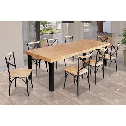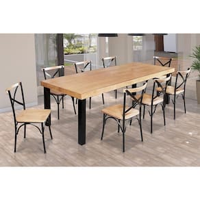 Mesa Jantar Retangular Industrial 2m Arlete Madeira Com 8 Cadeiras Paris Base Alumínio - l - Cor: Marrom