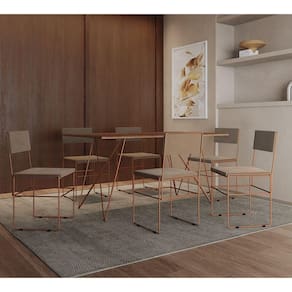 IMAGENS MERAMENTE ILUSTRATIVAS REALIZADO EDIÇÃO, PODENDO HAVER UMA PEQUENA VARIAÇÃO DE COR DEPENDENDO DE CADA TELA OU MONITOR.Mesa Jantar Retangular Industrial Trama 1,50x0,90m AmÃndoa 6 Cadeiras Estofadas Bege E Cobre VitÃria