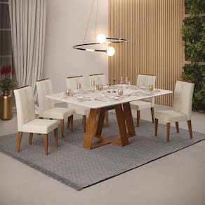 Mesa Kiara Tampo Chanfrado Curvo Madeira Freijó Com Quartzo Com visual imponente e acabamento sofisticado, a Mesa Kiara com Tampo Chanfrado é a escolha perfeita para quem deseja aliar elegância e funcionalidade na sala de tampo retangular com bordas chanfradas confere leveza ao design e um toque contemporâneo ao ambiente, além de acomodar base central com formas geométricas bem definidas, garante firmeza à estrutura e destaca o estilo moderno da peçátil e refinada, a Kiara se adapta facilmente a composições com diferentes modelos de cadeiras, sendo ideal para ambientes sofisticados e ões:Altura: 80cmLargura: 170cmProfundidade: 90cmObservações:- Tampo retangular com bordas chanfradas e acabamento de alto padrão- Espaço para refeições- Base central robusta com usinagem geométrica- Estrutura firme com excelente estabilidade- Design moderno e elegante, ideal para compor salas de jantar ou espaços gourmet