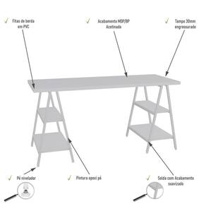 Mesa Kuadra Cavalete 150x60x75cm Branco Chess / Branco Chess / Sobre o ProdutoMesa Kuadra Cavalete 150X60X75cm Carvalho / Est.BrancaDescrição do Produto:A Mesa Cavalete KUMC6150 é um produto prático e versátil, que pode ser utilizado em diversos ambientes, como quarto e escritório, na sala, cozinha ou seu depó Linha Kuadra tem seu design com inspiração no estilo industrial, que remete muito a decoração usada nos Lofts das grandes metrópoles nos anos 60 e 70. Harmonizando o metal e os tons de madeira, foram projetados móveis versáteis e com estilo, que podem compor ambientes íveis cheios de personalidade, perfeitos para você decorar sua casa ou seu trabalho, tendo um resultado que caminha do estilo rústico ao Inclusos:1 MesaDimensões dos Produtos:Mesa Kuadra Cavalete 150X60X75cm Carvalho / 150 x 60 x 75 cmInformações Logísticas (Comp. X Prof. X Alt.) 155 x 64,5 x 7 cm - Peso: 26,784 KgPeso Total: 26,784 KgObservações:Não acompanha acessórios decorativos. Imagens meramente ilustrativas.Informações Técnicas / Características:- Cor do Produto: Carvalho / - Marca: Compace- Modelo: KUMC6150- Linha: Kuadra- Material: Mdp- Material da Estrutura / Pés: Aço- Acabamento: BP Acetinado- Escala de Brilho: Fosco- Fita de Borda: Pvc - Possui Gavetas: Não - Possui Prateleiras: 4- Peso Máximo por Prateleira: 5- Possui Pés: 2- Pés Niveladores: Sim - Acabamento Estrutura: Epóxi-Pó Texturizado- Formato: Retangular - Suporta Até (kg): 50 kg- Comprimento: 150cm- Profundidade: 60cm- Altura: 75cm - Peso Lí.: 25,79Kg- Recomendações de Uso, Manutenção e Limpeza: Para a limpeza, utilize flanela seca ou pano macio levemente umedecido em água. Utilize um pano seco em seguida. Evite com produtos químicos (solventes, thinner, acetona, etc) e não utilize nenhum tipo de esponja de aço.- Necessita de Montagem: Sim / Acompanha Manual de Montagem- Complexidade da Montagem: Média: pode ser montado por mais de uma pessoa e/ou necessite de maior conhecimento para montagem.- Garantia: 6 meses Material: Mdp | Acabamento: BP Acetinado | Escala de Brilho: Fosco | Fita de Borda: Pvc | Material da Estrutura: Aço | Acabamento da Estrutura: Epóxi-Pó Texturizado | Marca: Compace | Modelo: Mesa de escritório | Produto: Mesa | Cômodo indicado: Escritórios | Cor: Multicolorido | Tonalidade: Multicolorido | Profundidade: 60 | Altura: 75 | Comprimento: 150 | Fabricante: Compace | Coleção: Industrial | Requer Baterias: Não | Certificação Externa: | Componentes inclusos: Manual de montagem e kit acessórios | Preço de tabela: | Compace: do Modelo | 1: da Peça | KUMC6150: | Base da Mesa: | Duração da Garantia: | Dimensões do Produto (A x L x C), sem a caixa de embalagem: | Tipo de Mesa: | País de Origem: | Coleção de Antiguidade: | Montagem: | Móvel Dobrável: | Desing da Escrivaninha: | Recursos da Mesa: | Recursos da Escrivaninha: | Tipo de Garantia: | Produto personalizado: | de Assentos: | Tamanho Do Pacote: | Temas de Estampas: | Motivo de Isenção Anvisa: | Formato do Espelho: | Código Anvisa do Produto: | Shape: | Nr. do Lote do Produto: | Data de validade Anvisa: | Altura da Mesa: | Formato da Escrivaninha: | Qtd. de Produto no Lote: | Funcionalidades: | Estilo: | Quantidade: Cor: Branco Chess /