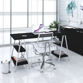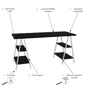 Mesa Kuadra Cavalete 150x60x75cm Preto ônix / Preto ônix / Sobre o ProdutoMesa Kuadra Cavalete 150X60X75cm Carvalho / Est.BrancaDescrição do Produto:A Mesa Cavalete KUMC6150 é um produto prático e versátil, que pode ser utilizado em diversos ambientes, como quarto e escritório, na sala, cozinha ou seu depó Linha Kuadra tem seu design com inspiração no estilo industrial, que remete muito a decoração usada nos Lofts das grandes metrópoles nos anos 60 e 70. Harmonizando o metal e os tons de madeira, foram projetados móveis versáteis e com estilo, que podem compor ambientes íveis cheios de personalidade, perfeitos para você decorar sua casa ou seu trabalho, tendo um resultado que caminha do estilo rústico ao Inclusos:1 MesaDimensões dos Produtos:Mesa Kuadra Cavalete 150X60X75cm Carvalho / 150 x 60 x 75 cmInformações Logísticas (Comp. X Prof. X Alt.) 155 x 64,5 x 7 cm - Peso: 26,784 KgPeso Total: 26,784 KgObservações:Não acompanha acessórios decorativos. Imagens meramente ilustrativas.Informações Técnicas / Características:- Cor do Produto: Carvalho / - Marca: Compace- Modelo: KUMC6150- Linha: Kuadra- Material: Mdp- Material da Estrutura / Pés: Aço- Acabamento: BP Acetinado- Escala de Brilho: Fosco- Fita de Borda: Pvc - Possui Gavetas: Não - Possui Prateleiras: 4- Peso Máximo por Prateleira: 5- Possui Pés: 2- Pés Niveladores: Sim - Acabamento Estrutura: Epóxi-Pó Texturizado- Formato: Retangular - Suporta Até (kg): 50 kg- Comprimento: 150cm- Profundidade: 60cm- Altura: 75cm - Peso Lí.: 25,79Kg- Recomendações de Uso, Manutenção e Limpeza: Para a limpeza, utilize flanela seca ou pano macio levemente umedecido em água. Utilize um pano seco em seguida. Evite com produtos químicos (solventes, thinner, acetona, etc) e não utilize nenhum tipo de esponja de aço.- Necessita de Montagem: Sim / Acompanha Manual de Montagem- Complexidade da Montagem: Média: pode ser montado por mais de uma pessoa e/ou necessite de maior conhecimento para montagem.- Garantia: 6 meses Material: Mdp | Acabamento: BP Acetinado | Escala de Brilho: Fosco | Fita de Borda: Pvc | Material da Estrutura: Aço | Acabamento da Estrutura: Epóxi-Pó Texturizado | Marca: Compace | Modelo: Mesa de escritório | Produto: Mesa | Cômodo indicado: Escritórios | Cor: Multicolorido | Tonalidade: Multicolorido | Profundidade: 60 | Altura: 75 | Comprimento: 150 | Fabricante: Compace | Coleção: Industrial | Requer Baterias: Não | Certificação Externa: | Componentes inclusos: Manual de montagem e kit acessórios | Preço de tabela: | Compace: do Modelo | 1: da Peça | KUMC6150: | Base da Mesa: | Duração da Garantia: | Dimensões do Produto (A x L x C), sem a caixa de embalagem: | Tipo de Mesa: | País de Origem: | Coleção de Antiguidade: | Montagem: | Móvel Dobrável: | Desing da Escrivaninha: | Recursos da Mesa: | Recursos da Escrivaninha: | Tipo de Garantia: | Produto personalizado: | de Assentos: | Tamanho Do Pacote: | Temas de Estampas: | Motivo de Isenção Anvisa: | Formato do Espelho: | Código Anvisa do Produto: | Shape: | Nr. do Lote do Produto: | Data de validade Anvisa: | Altura da Mesa: | Formato da Escrivaninha: | Qtd. de Produto no Lote: | Funcionalidades: | Estilo: | Quantidade: Cor: Preto Ônix /