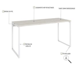 MDPSobre o ProdutoMesa Kuadra Office 150X60X75cm Amadeirado / Est.BrancaDescrição do Produto:A Mesa Diretor KUME6150 é um produto prático e versátil, que pode ser utilizado em diversos ambientes, como quarto e escritório, na sala, cozinha ou seu depó Linha Kuadra tem seu design com inspiração no estilo industrial, que remete muito a decoração usada nos Lofts das grandes metrópoles nos anos 60 e 70. Harmonizando o metal e os tons de madeira, foram projetados móveis versáteis e com estilo, que podem compor ambientes íveis cheios de personalidade, perfeitos para você decorar sua casa ou seu trabalho, tendo um resultado que caminha do estilo rústico ao Inclusos:1 MesaDimensões dos Produtos:Mesa Kuadra Office 150X60X75cm Amadeirado / 150 x 60 x 75 cmInformações Logísticas (Comp. X Prof. X Alt.) 155 x 64,5 x 7 cm - Peso: 17,534 KgPeso Total: 17,534 KgObservações:Não acompanha acessórios decorativos. Imagens meramente ilustrativas.Informações Técnicas / Características:- Cor do Produto: Amadeirado / - Marca: Compace- Modelo: KUME6150- Linha: Kuadra- Material: Mdp- Material da Estrutura / Pés: Aço- Acabamento: BP Acetinado- Escala de Brilho: Fosco- Fita de Borda: Pvc - Possui Gavetas: Não - Possui Pés: 2- Pés Niveladores: Sim - Acabamento Estrutura: Epóxi-Pó Texturizado- Formato: Retangular - Suporta Até (kg): 30 kg- Comprimento: 150cm- Profundidade: 60cm- Altura: 75cm - Peso Lí.: 16,54Kg- Recomendações de Uso, Manutenção e Limpeza: Para a limpeza, utilize flanela seca ou pano macio levemente umedecido em água. Utilize um pano seco em seguida. Evite com produtos químicos e não utilize nenhum tipo de esponja de aço.- Necessita de Montagem: Sim / Acompanha Manual de Montagem- Complexidade da Montagem: Média- Garantia: 6 meses