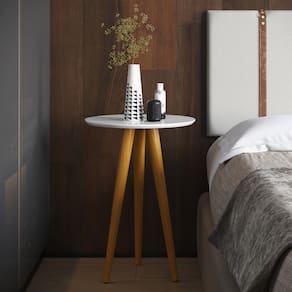 O acabamento na cor branca é um coringa na decoração: ilumina o ambiente, transmite sensação de limpeza e combina com absolutamente qualquer cor de sofá, tapete ou cortina. Com 60cm de altura, é perfeita para servir de apoio lateral para copos, controles, livros ou aquele abajur especial.