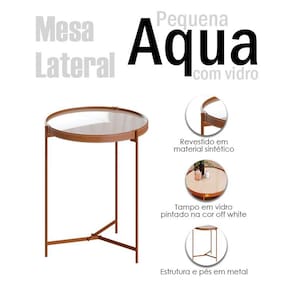 Mesa Lateral Ambiente Aqua Pequena com Vidro Off White Cobre - Imcal