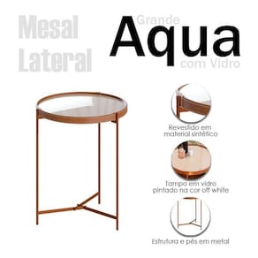 Mesa Lateral Aqua Grande com Vidro Off White Cobre - Imcal