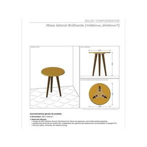 Marca: Móveis Bechara Linha: Sala Modelo: Brilhante Formato do móvel: Redondo Material do tampo: MDF 15 mm Material dos pés: Madeira maciça (pinus) Largura: 44 cm Profundidade: 44 cm Altura: 48 cm Acabamento: Pintura UV Requer montagem: Sim Altura da embalagem: 7 cm Largura da embalagem: 47 cm Comprimento da embalagem: 47 cm Peso: 3,2 Kg Condição do item: Novo É kit: Não se aplica Embalagem do envio: Papelão Informações adicionais: - Os objetos que ambientam as fotos não acompanham o produto; - O produto será entregue desmontado; - É de inteira responsabilidade do cliente a montagem do produto e/ou instalação, custos de transporte por escadas e/ou elevadores, guincho ou içamento, assim como possíveis avarias provenientes de manuseio inadequado; - Embora o produto acompanhe o manual de montagem, verifique a complexidade antes de decidir montá-lo sozinho, recomendamos que contrate um profissional de sua confiança; - Fique atento, nossas cores podem sofrer alterações dependendo do seu monitor; - ANTES DE MONTAR O SEU PRODUTO, certifique-se que todas as instruções dispostas no manual, bem como todas as ferragens descritas, estejam presentes dentro da embalagem. Verifique se há alguma peça avariada, caso esteja, prestaremos a devida assistência dentro do prazo da garantia.