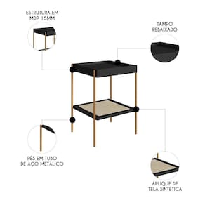 Altura: 58 cm | AssemblyRequired: Sim, sugerimos a contratação do nosso serviço de montagem (para os CEPs em que o serviço está dispon | Color: NeroDourado | ColorFamily: NeroDourado | ColorSimple: NeroDourado | ColorSupplier: NeroDourado | Cor: NeroDourado | Gênero: Unisex | Largura: 43 cm | Manual: Sim | Material: MDP | MaterialFamily: MDP | Model: Arlo | Origem: | OriginCountry: | OriginState: PR | Peso: 4,75 kg | ProductContents: 1 Mesa de Centro | ProductHeight: 58 | ProductInstructions: Produto para uso em ambiente interno, nao devendo ficar exposto ao sol, calor e umidade excessivos. | ProductLength: 40 | ProductWarranty: 90 dias após o do produto | ProductWeight: | ProductWidth: 43 | Profundidade: 40 cm | Requere montagem: Sim | SizeDescription: 58 x 43 x 40 cm | SupplierSimpleName: Mesa Lateral Com Prateleira Para Sala Arlo A10 NeroDourado - Mpozenato