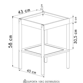 Fabricada em MDP de 15 mm com acabamento BP, a Mesa Lateral oferece durabilidade. Os pés em madeira maciça de eucalipto garantem estabilidade, enquanto as sapatas emborrachadas protegem o piso de arranhões. O aplique de tela sintética na prateleira inferior não só adiciona um elemento decorativo, mas também oferece elegância ao ambiente. Com seu design retrô, a Mesa Lateral Sofá se adequa facilmente a diferentes ambientes e estilos de decoração. Este móvel não é apenas um objeto de apoio, mas também um charme na decoração da Sala de Estar.