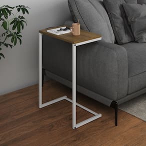 Mesa Lateral de Apoio Industrial Sofá Charmme Ferro Branco e Tampo Freijó - Marrom