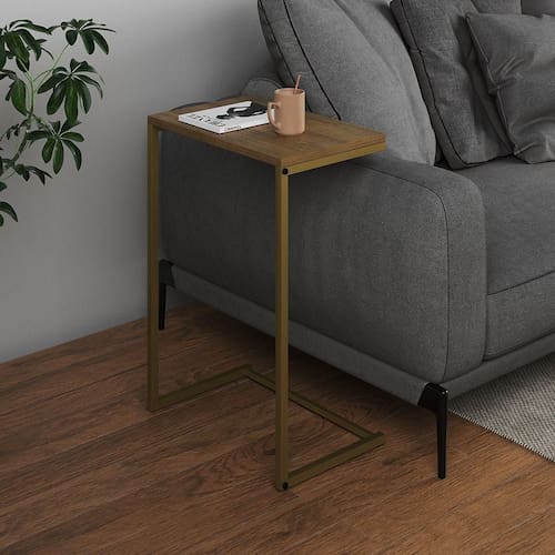 AS IMAGENS SÃO MERAMENTE ILUSTRATIVAS E PODEM SOFRER VARIAÇÕES DE COR E PEQUENOS DETALHES DE ACORDO COM O SEU MONITOR, ILUMINAÇÃO DO AMBIENTE E ATÉ MESMO A SUA PERCEPÇÃO Lateral de Apoio Industrial Sofà Charmme Ferro Dourado e Tampo FreijÃ