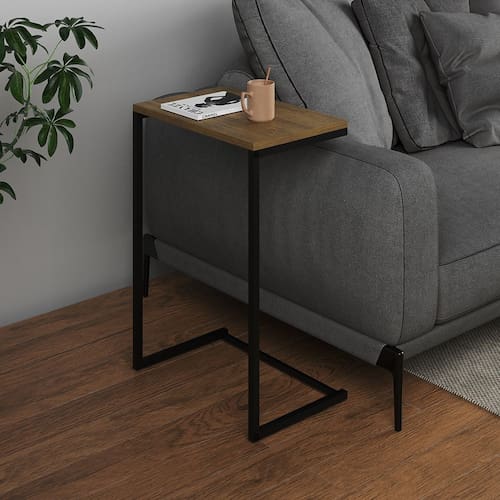 Mesa Lateral de Apoio Industrial Sofá Charmme Ferro Preto e Tampo Freijó - Marrom