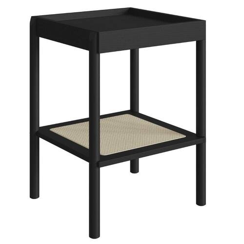 Mesa Lateral De Apoio Oslo Artesano 43 Cm (largura) Mdp Nero Palha Sintética Bege Pé Madeira Maciça