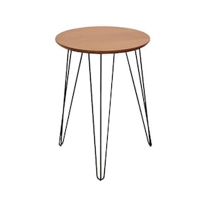 Mesa Lateral De Canto Redonda Industrial Pé De Ferro - Cor: Bege