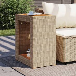 Esta mesa lateral de jardim atinge um ótimo equilíbrio entre estilo e função, ótima para áreas externas como pátios, varandas ou jardins. Com um tampo de madeira maciça de acácia e uma base elegante de poliéster e rattan, ele adiciona um toque elegante e uma atmosfera convidativa